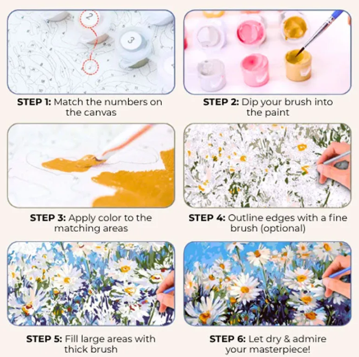 This oil painting DIY set can be customized according to the photos you provide, turning precious memories into hand-painted works of art. Whether it is a couple photo, family photo, or pet portrait, it can be easily transformed into a unique art painting drawn by you, which is very memorable.